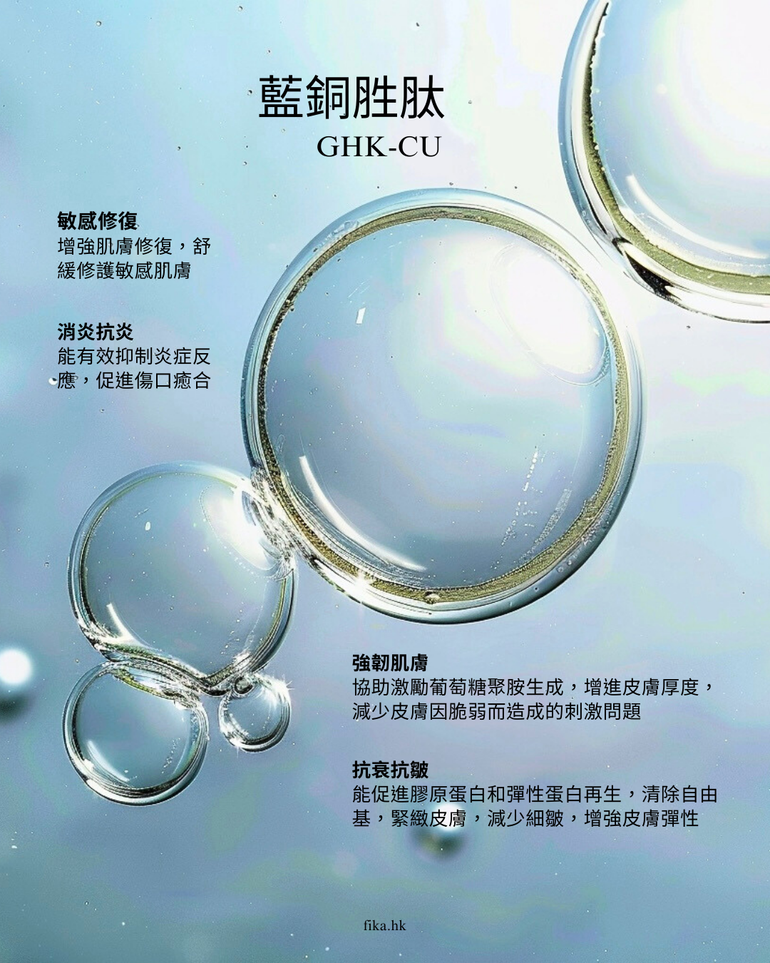 被譽為「肌膚修復師」的藍銅胜肽,能高效修復受損、激活膠原蛋白,由肌底撐起彈性,顯著撫平乾紋細紋。