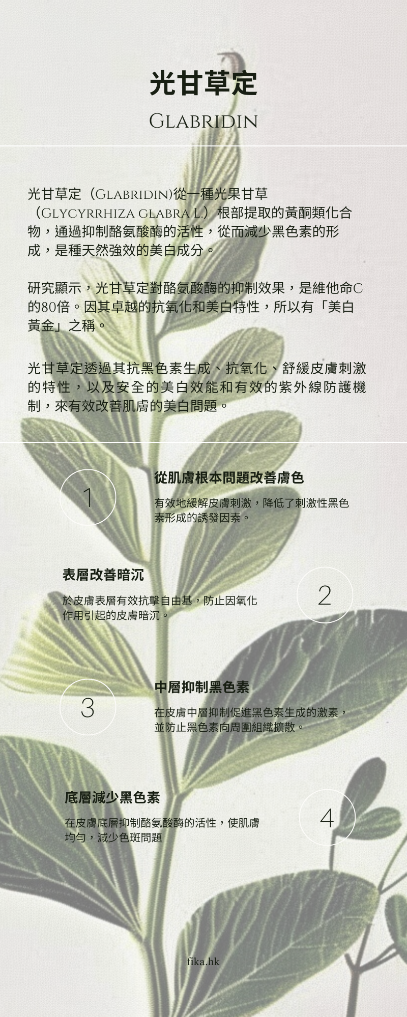 以「美白黃金」光甘草定為核心,從源頭抑制並淡化黑色素,有效改善色斑、痘印,讓整體膚色回復淨白均勻。
