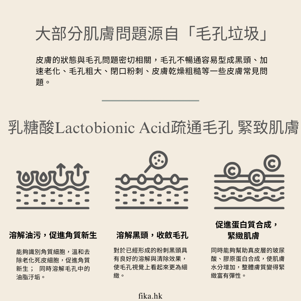 以最溫和的第三代果酸 PHA 為核心,軟化並代謝老廢角質,暢通並收細毛孔,從根源改善粗糙、黑頭與粉刺問題。